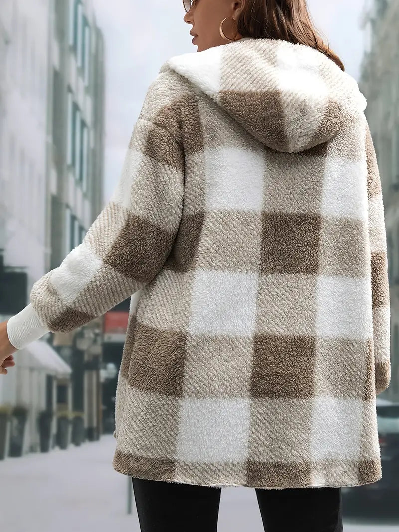 Marina - Gezellige Karomantel met Teddyvoering en Capuchon voor Dames