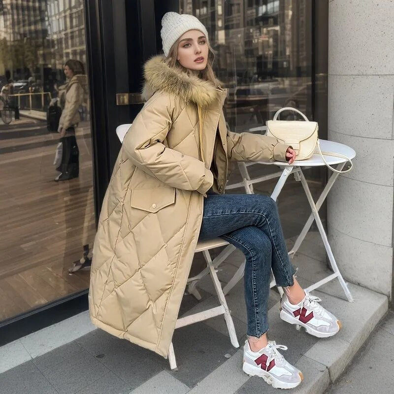 Modieuze Lange Gestikte Damesjas met Capuchon | Stijlvolle Winterjas voor Koude Dagen