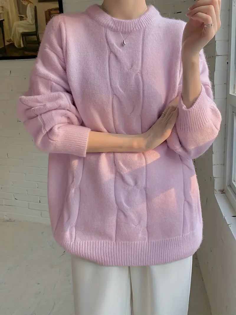 Elina - Effen Gebreide Trui met Zopfmotief voor Dames