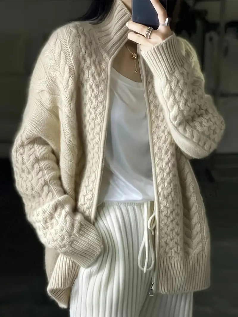 EliseCardi - Grof Gebreide Ritsvest met Losse Pasvorm voor Dames