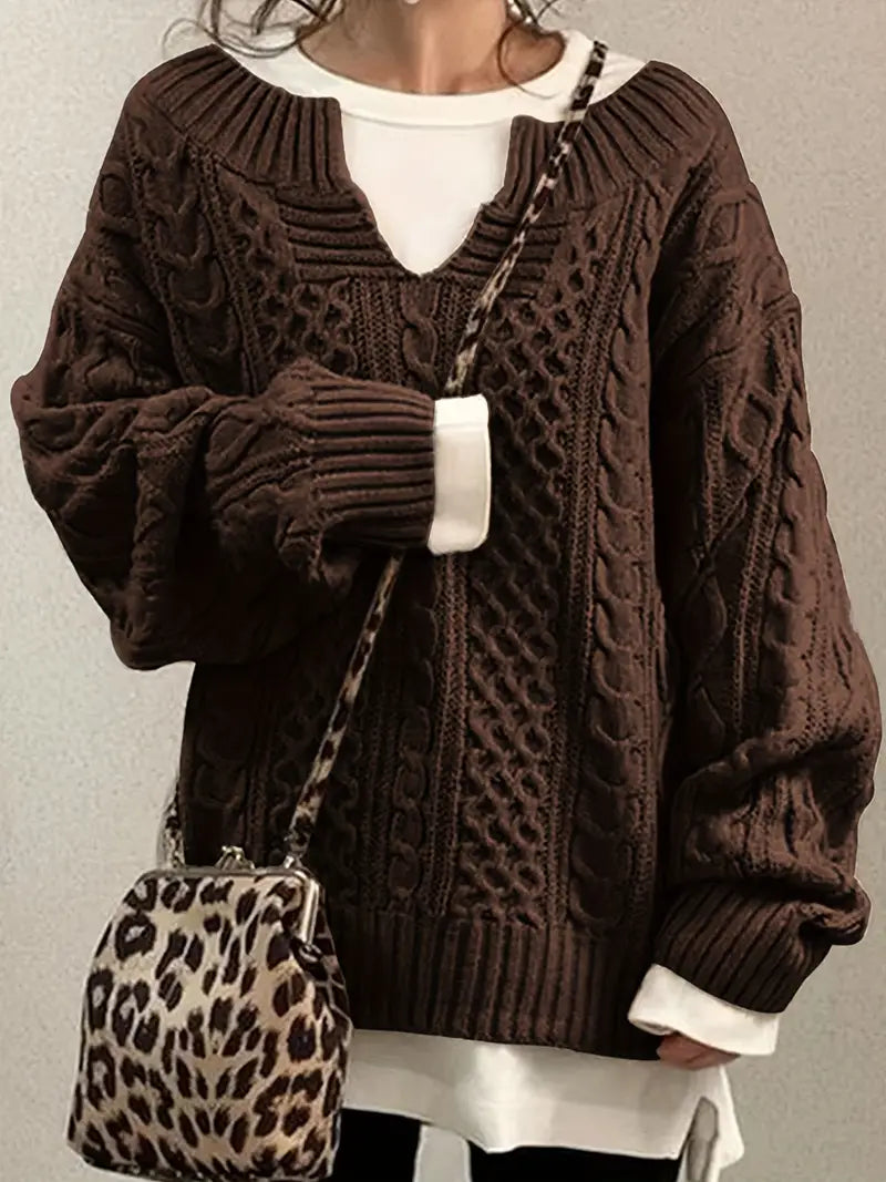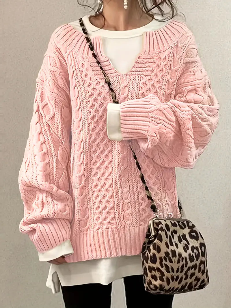 Josina - Gebreide Trui met Zopfmotief en V-Hals voor Dames