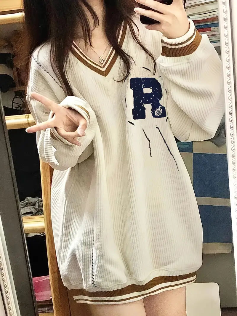 LiviaVee - Gebreide Damestrui met R-Patroon en V-Hals – Stijlvol en Comfortabel