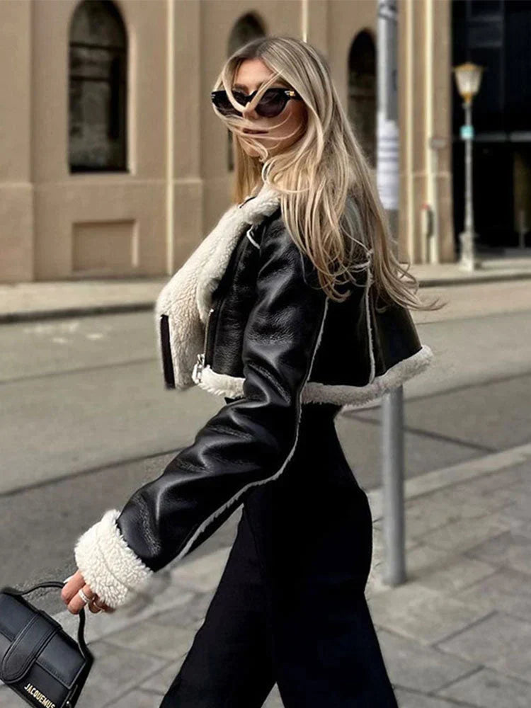 Retro Leren Damesjas met Kunstbont - Stijlvolle Vintage Jas voor Koude Dagen