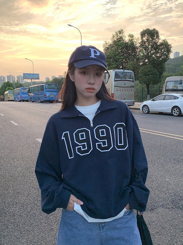 Vintage Vibes - Retro Pullover uit de Jaren '90 met Halve Rits voor Dames