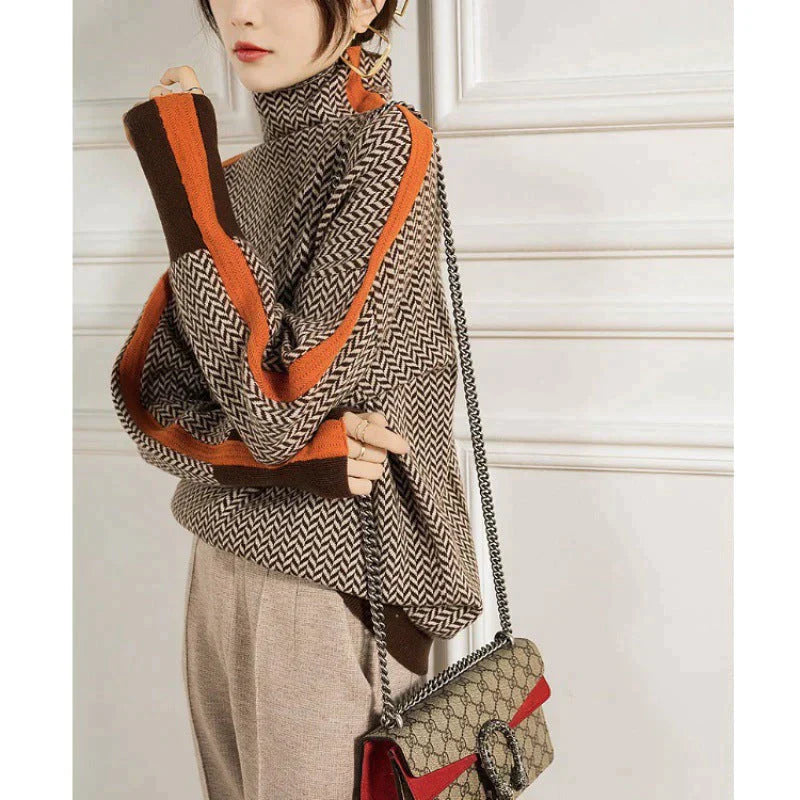 Serena Flow - Klassieke Gebreide Trui met Hoge Kraag en Golvend Patroon
