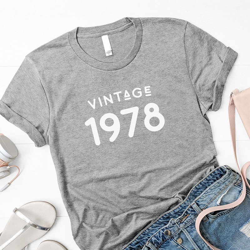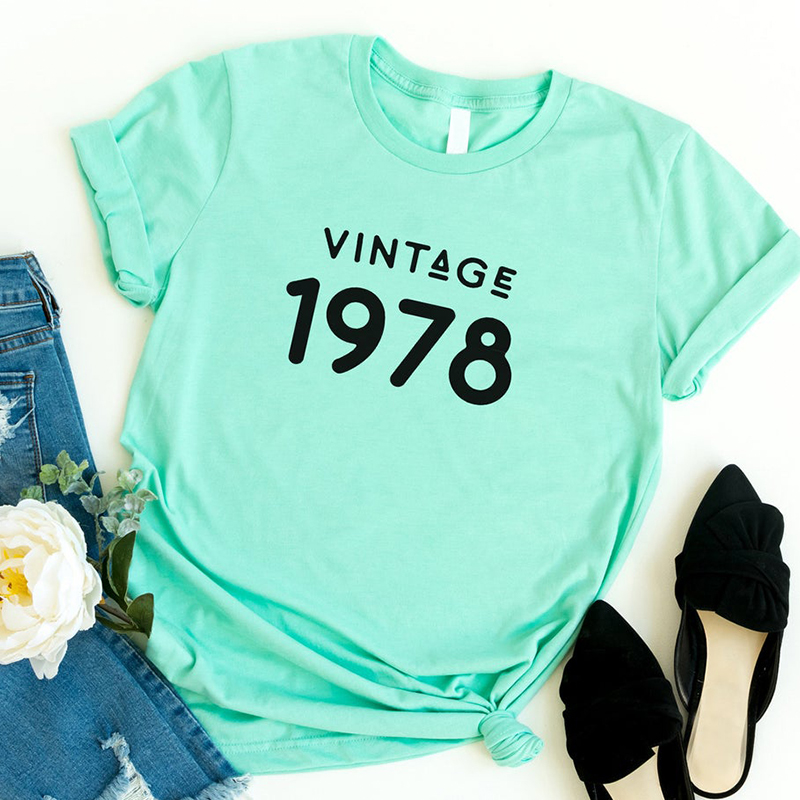 Vintage 1978 T-Shirt Women 43 Years Old 43rd Birthday Gift Girls Mom Wife Daughter Party Top Tshirt Cotton Streetwear Tee Shirt
