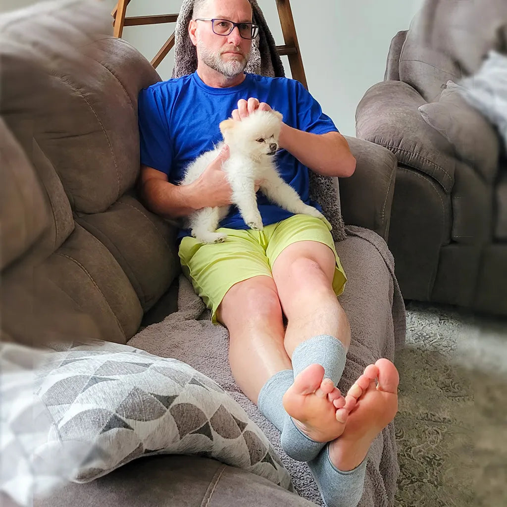 “Ik dacht altijd dat mijn voeten gewoon gezwollen en zwaar waren, maar ik ontdekte dat ze eigenlijk gezwollen waren door onvoldoende doorbloeding. Een paar weken geleden zag ik een advertentie op Facebook over deze sokken, dus ik besloot ze te proberen en ik ben heel blij dat ik dat gedaan heb. De nachtelijke compressie heeft de zwelling in mijn voeten sterk verminderd en lang staan is nu geen probleem meer. Ik kijk ernaar uit om andere producten te proberen."